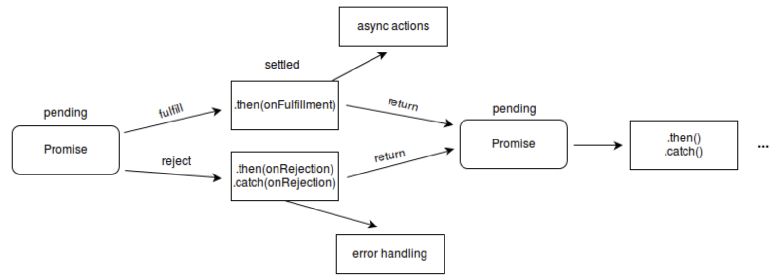 - Pending: 프로미스가 이행되거나 거부되기 전, 즉 대기 상태.